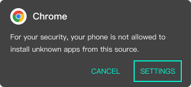 3.You need to enable “Unknown Sources” to open the file. Tap “Settings”.